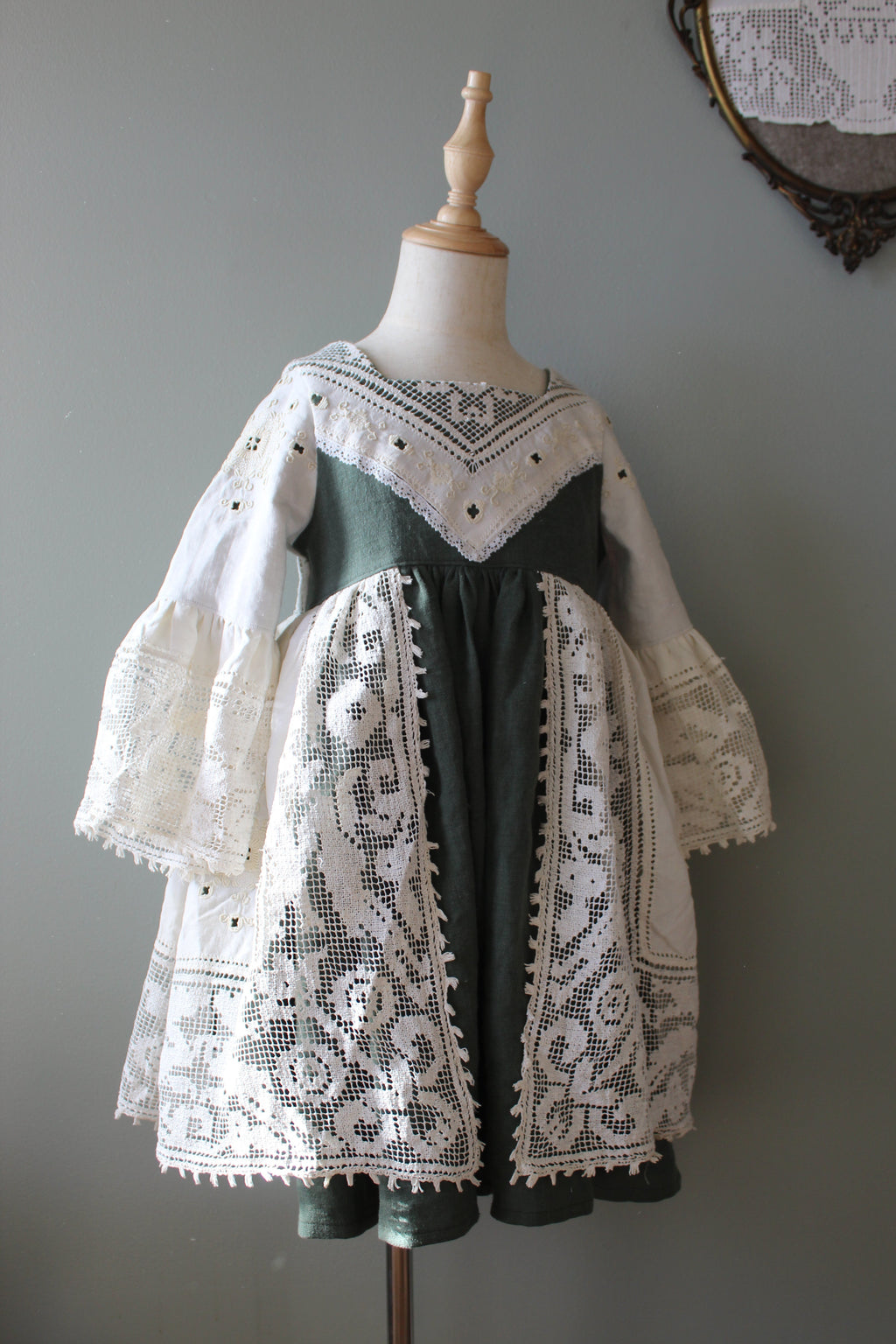 Melissa Linen and Lace Bell Sleeve Dress | Girls Size 7 | Ready to Ship
